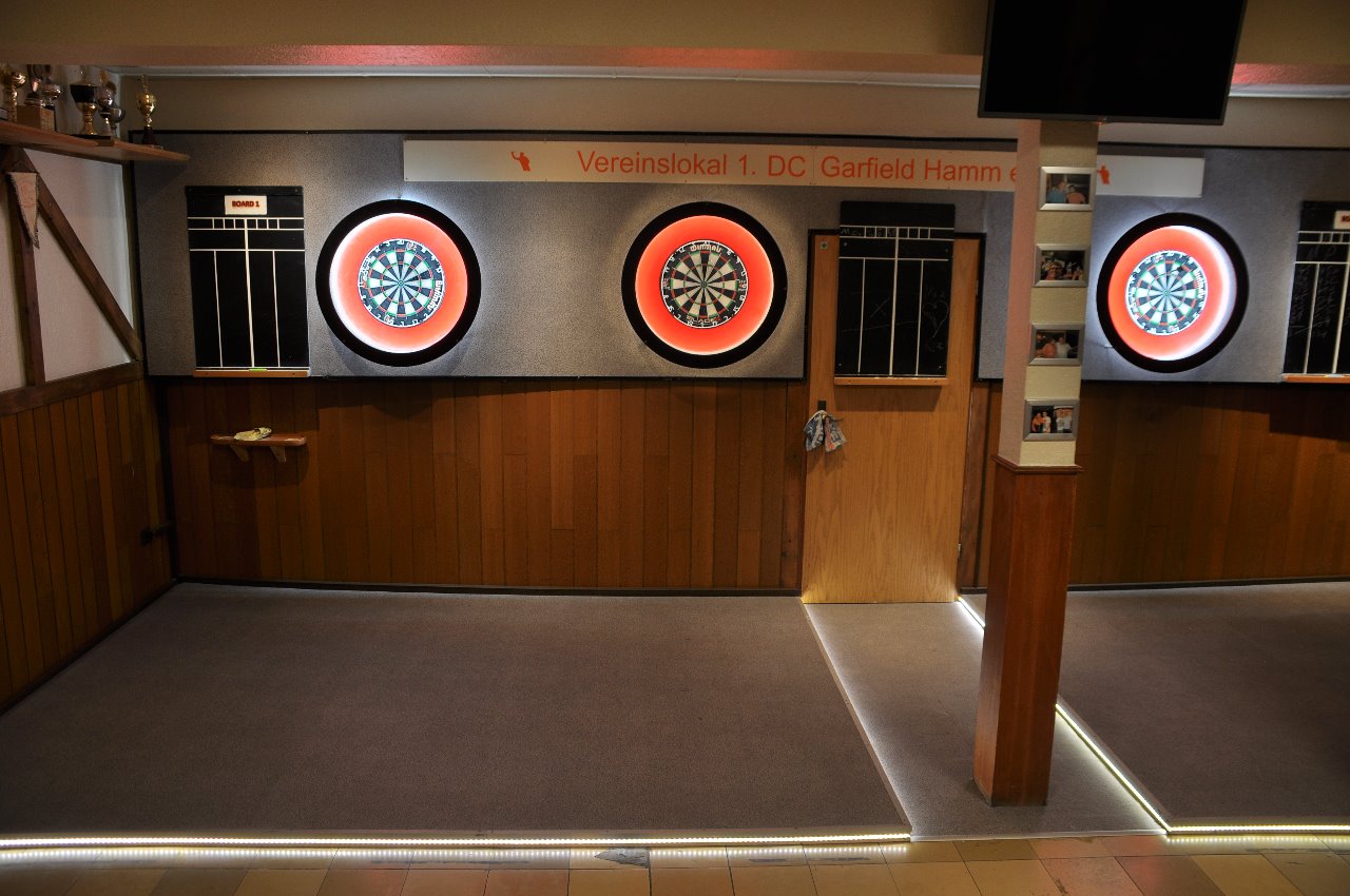 Unsere Dartanlage bietet im Moment 3 Boards in einem eigenen abgetrennten Raum. Die Kneipe bietet Getränke aller Art sowie Kleinigkeiten zum Essen.